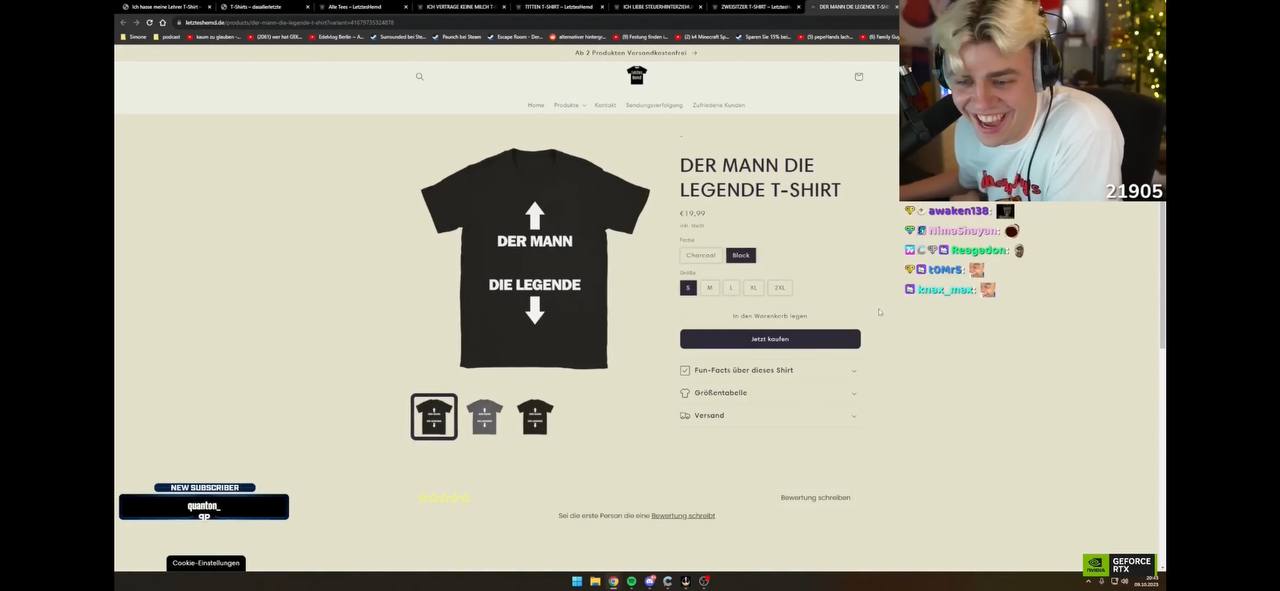 Der TikToker Rizzco, mit über 1 Million Followern, trägt unser Bestseller-T-Shirt 'Gesucht vom Finanzamt'. Ein Statement-Piece.